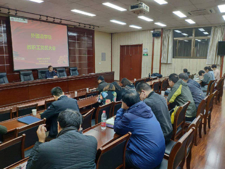 11月8日下午,外國語學院在雁塔校區第五會議室召開“不忘初心、牢記使命”主題教育工作推進會暨全院教職工黨員大會,學院全體教師黨員參加會議,會議由學院黨委書記蔡強主持。
