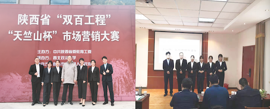2019年10月26日至27日,經濟管理學院企管系程駿副教授,帶領市場營銷專業學生唐穎、賀雨、葉舒婷、劉佳瑞、郭一飛和高鈺,在山陽縣參加“雙百工程天竺山杯”市場營銷大賽總決賽。此次比賽,由中共陜西省委教育工委主辦、西北政法大學承辦、商洛市山陽縣人民政府協辦,比賽流程分為初賽和總決賽兩個階段。經過初賽100支隊伍的激烈角逐,全省24所高校共32支隊伍晉級總決賽。總決賽階段,通過提交策劃文本、現場匯報、講解和展示營銷策劃創意、回答專家提問等環節,經濟管理學院學生最終獲省級優秀獎,程駿老師獲優秀指導老師榮譽稱號,唐穎同學獲山陽宣傳大使稱號。