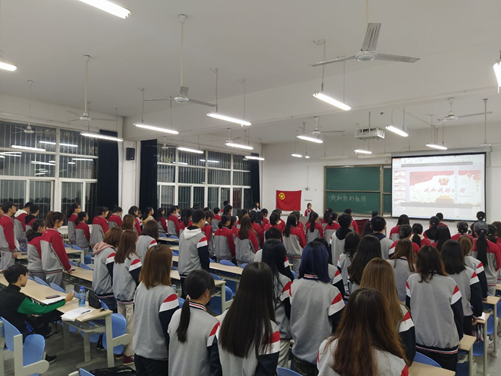 為慶祝中華人民共和國成立70周年,響應黨和國家對共青團員的新要求,結合學院專業特色,創新主題團日活動,11月3日晚,外國語學院在鄠邑校區B105教室開展“我和我的祖國”雙語主題團日活動。學院2018級和2019級100余名團員參加了此次活動。