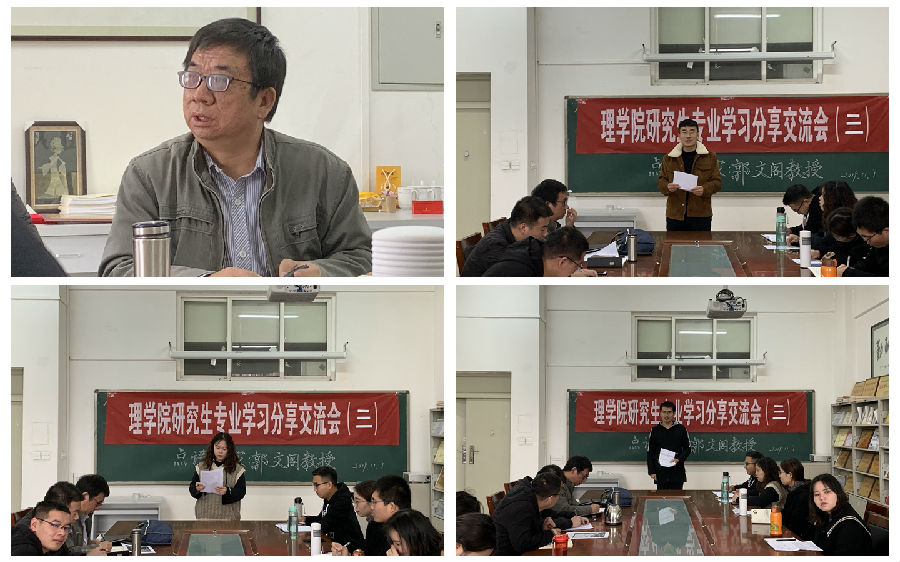 11月1日上午,理學院在鄠邑校區管道樓111會議室舉辦了本學期第三場研究生專業學習分享交流會。郭文閣教授點評指導,黨委副書記馬小剛主持,王梓琳、李陽桃子、張躍斌、靳巖鑫、黃亮、陳曉娜六名研究生同學先后主講,2019級全體研究生參加。