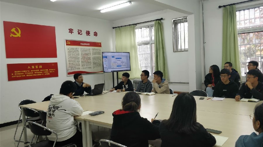 2019年10月30日下午,校黨委組織部副部長王亮老師參加了學院儲運第二學生黨支部主題教育活動,并講授黨課。活動在鄠邑校區14號樓黨員活動室召開,儲運第二學生黨支部全體黨員及發展對象參加。