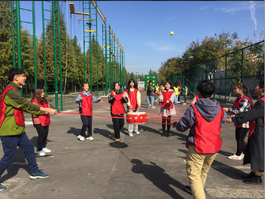 團隊訓練前,舉行了簡單的分組和開班儀式。拓展訓練期間,在教練的指導下分別進行了團隊文化建設、高空項目、同心鼓、達芬奇密碼、穿越生死線等多個項目訓練。同學們挑戰自我,精誠協作,由最初的無法凝聚到彼此的默契配合,隊友間的團隊意識逐漸增強,團隊凝聚力和執行力得到了極大地提高。