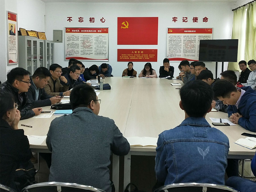 ??首先,劉曉陽老師對學院2019年下半年黨員發展進行了工作安排,對學院學生黨支部“不忘初心、牢記使命”主題教育的學習教育工作開展情況進行了階段總結和工作部署;學生黨建辦公室主任金衛棟對近期常規性和創新性工作進行了梳理。??