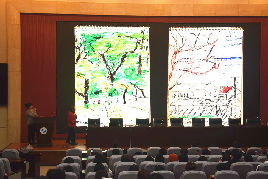 丸山欣也教授用回憶錄的方式為學生打開了一個全新的設計世界。隨即他強調大家要對身邊事物及時記錄,了解建筑的價值存在,他表示自己用速寫記錄了日本當時社會變化和重大事件以及文化的改變,由此鼓勵年輕人應多出去旅行,去接觸和自己價值觀相同的人,去了解和記錄國家的文化精髓。活動末尾,學生們踴躍向教授提問,丸山欣也教授對每一個問題耐心解答。講座結束,李院長對講座總結時表示:“人不僅要讀萬卷書,更要行萬里路,積沙成塔!”