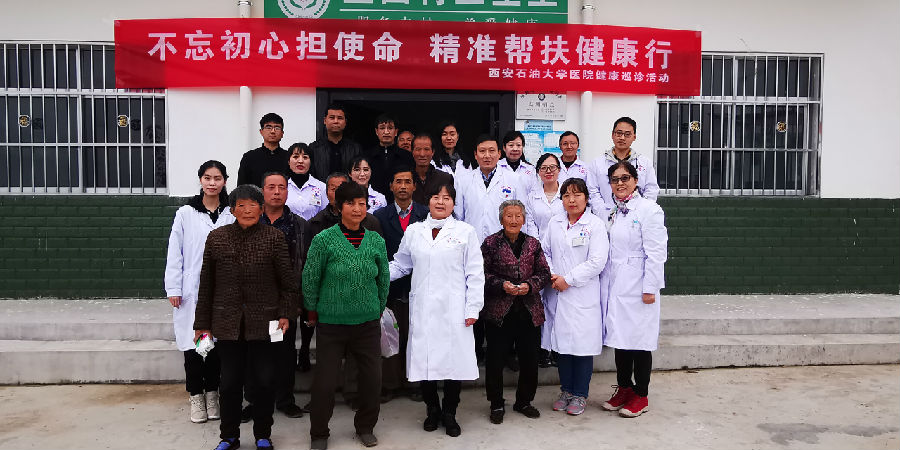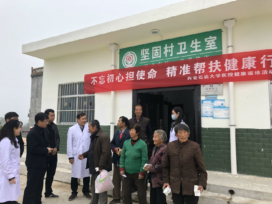 校醫院黨支部發揮專業優勢,精準健康扶貧,以實際行動踐行“不忘初心、牢記使命”主題教育。10月22日,校醫院黨支部組織黨員干部在主管校領導蘇文甫副校長帶隊下,一行13余人赴永壽縣永平鎮堅固村開展“不忘初心擔使命精準幫扶健康行”大型義診、巡診主題黨日活動。