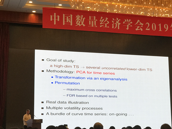 會議主旨報告先由英國倫敦經濟與政治科學學院統計系姚琦偉教授進行“Multiple Forecasting based on Time Series PCA”的學術報告,接著由新加坡管理大學經濟學院蘇良軍教授進行以“Uniform Inference in Linear Panel Data Models with Two-Dimensional Heterogeneity”為主題的報告。