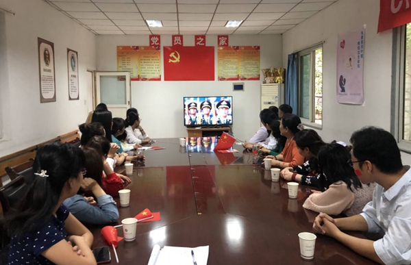 校醫院全體黨員、入黨積極分子、職工觀看慶典活動后進行了學習討論,大家紛紛表示為祖國的強大而自豪,結合開展的“不忘初心、牢記使命”主題教育,深刻領會習近平總書記的重要講話精神,立足本職崗位,做好學校醫療保障工作,為學校的建設和發展保駕護航,為祖國更加強大貢獻一份力量。