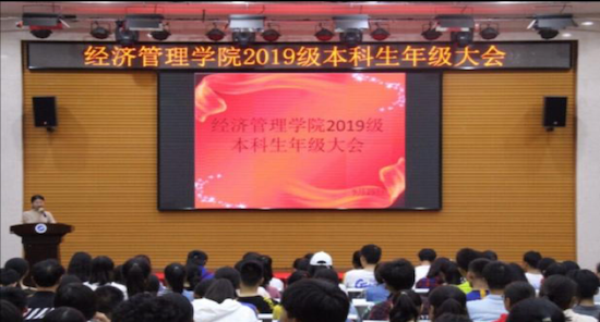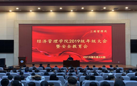 西安石油大學經濟管理學院于2019年9月24日晚19:00和9月25日下午16:40分別在鄠邑校區圖書館弘石報告廳、經管人文樓118室召開了2019級商管和非商管專業年級大會暨安全教育大會。2019級輔導員齊基老師、王曉天老師與2019級600余名學生參加了本次會議。