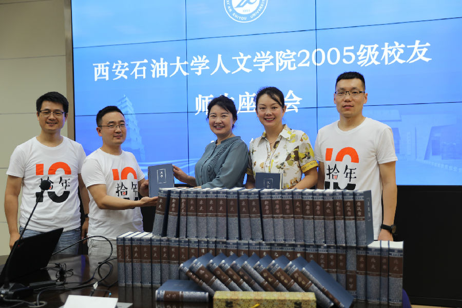 7月20日,人文學院2009屆漢語言文學專業、新聞學專業、法學專業四十余位校友回到母校,舉行“闊別十年,長安再聚”同學聚會,追尋往日美好,暢敘昔日友情。西安石油大學校友總會辦公室與人文學院一同熱情接待了校友們,并在校本部西階第二會議室舉辦師生座談會。本次座談會由人文學院黨委書記余小勇主持,人文院長李濤、副書記盛丹及學校校友總會辦公室同曉出席。