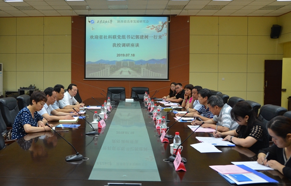 7月18日上午,陜西省社會科學聯合會黨組書記郭建樹、副主席張雄一行來我校調研。省社科聯學會部部長梁亞娟、省社科聯辦公室副主任翟金榮陪同調研。座談會在雁塔校區第一會議室召開。我校副校長、校社科聯常務副主席楊戰社,經濟管理學院負責人以及陜西省改革發展研究會相關人員參加座談會。
