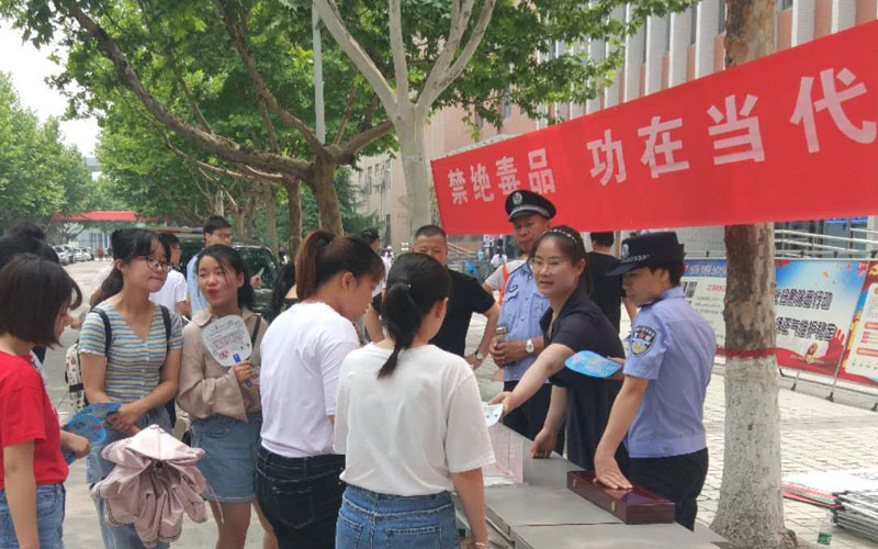 6月26日上午,保衛處聯合公安鄠邑分局禁毒大隊在鄠邑校區第二學生食堂門前廣場開展了國際禁毒日宣傳活動。保衛處工作人員和禁毒大隊民警通過擺放宣傳展板、發放宣傳資料、展示仿真毒品等形式對學生進行了禁毒知識宣傳。禁毒大隊民警就毒品的危害、如何拒絕毒品現場為學生進行了介紹。