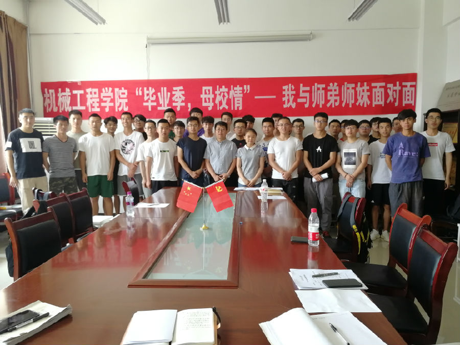 6月25日中午,機械工程學院“畢業季,母校情”系列活動“我與師弟師妹面對面”活動在鄠邑校區機械材料樓431室舉行,學院團委書記、學管辦主任文愛國,2015級輔導員歐紅娟,2019屆優秀畢業生及低年級學生代表總計40余人參加,會議由2017級輔導員馬武軍主持。