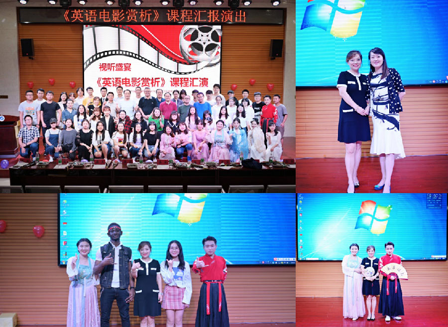 2019年6月21日晚6點,“英語電影賞析課程匯演”在鄠邑校區經管人文樓118報告廳圓滿舉辦。《英語電影賞析》班的同學們和授課教師經過精心準備和排練為全校師生帶來了一場視聽盛宴。出席本次匯演活動的嘉賓有外國語學院副書記王業青、副院長陳武、“陜西省教學名師”袁森教授、公共外語教學二部主任彭健、英語系主任鐘澤波、翻譯系主任高鵬鵬及外國語學院教師趙瑋等,同時,本次匯演特邀經濟管理學院閆大維書記前來現場指導。全校共200余名學生觀看匯演。
