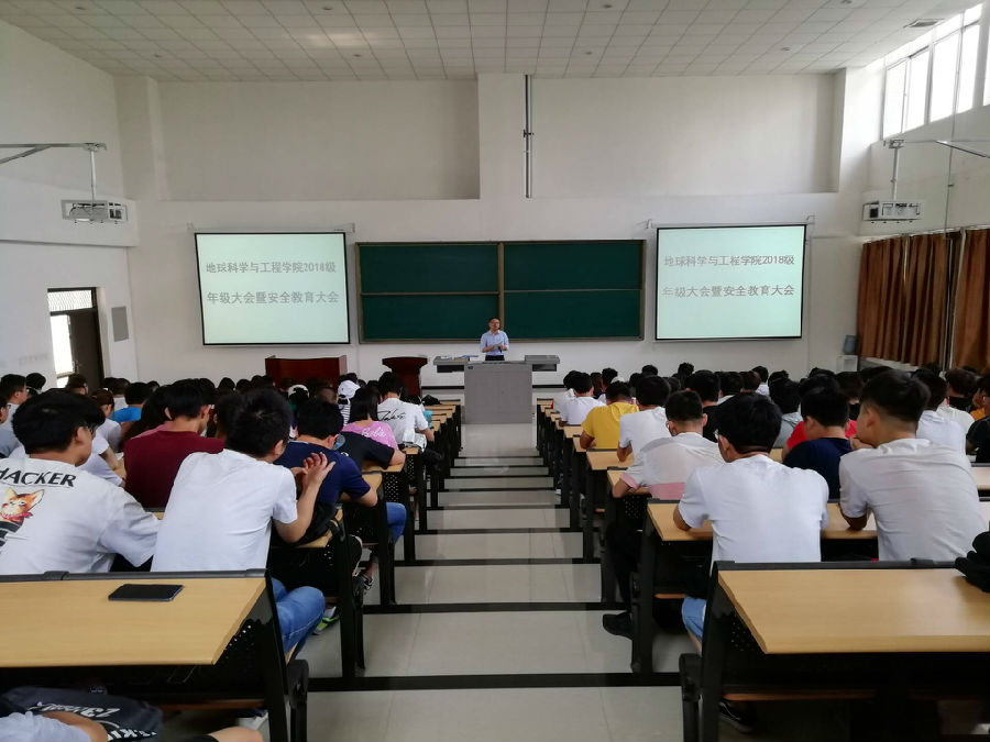 6月25日上午9:00,地球科學與工程學院2018級學生在鄠邑校區石工地科樓115教室召開年級大會。輔導員李化杰老師主持會議,2018級全體同學參加本次大會。