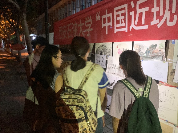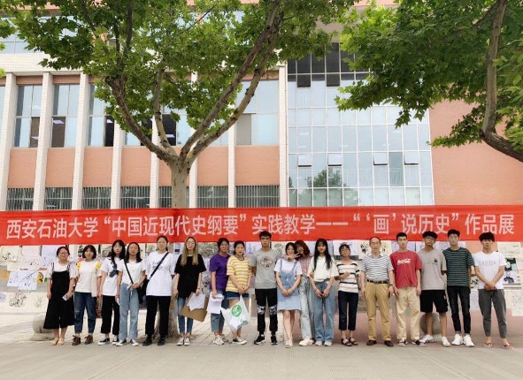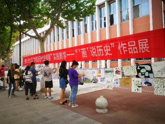 6月18日,在成功舉辦“新農村社會實踐調研”、“述說老物件”、“中國近現代歷史遺跡考察”等活動的基礎上馬克思主義學院在鄠邑校區開展了“畫”說歷史作品展活動。本次活動以“不忘初心,走進新時代”為主題,在老師的指導下學生以畫作的形式集中展現了建黨98周年、新中國成立70周年和改革開放40年來我黨光榮的革命傳統和我國社會主義建設的偉大成就。開展以來,觀看者絡繹不絕,受到了我校師生的一致好評。