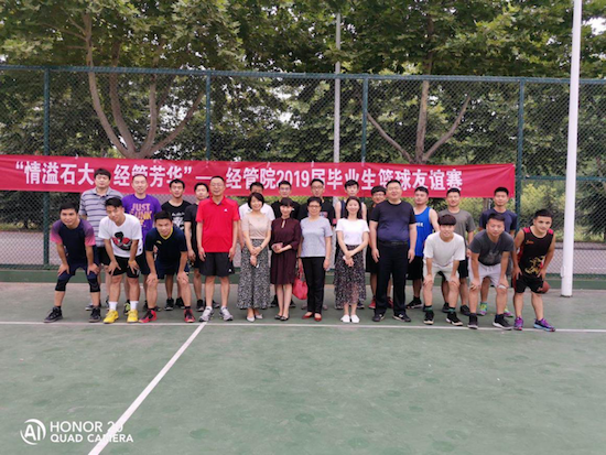 2019年6月18日、19日,經濟管理學院在我校鄠邑校區東籃球場舉行以“情溢石大,經管芳華”為主題的歡送2019屆畢業生師生籃球賽。經濟管理學院工會主席、黨委副書記趙海濤等十余名教師代表與畢業生代表參加了比賽。