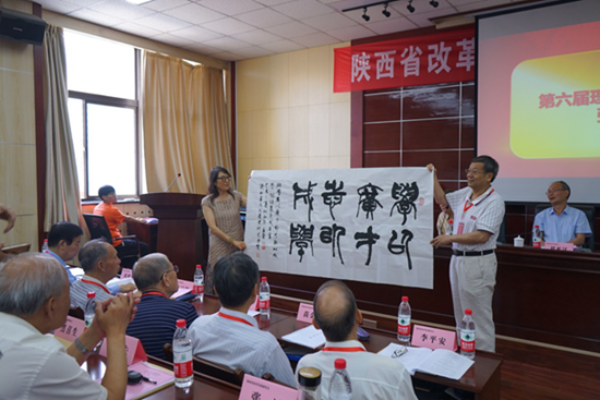 根據大會議程,西安交通大學經濟與金融學院沈悅教授作關于研究會第五屆財務審計報告,我校經濟管理學院王君萍院長作關于研究會章程修改說明,黃莉副教授宣讀研究會會費標準及管理辦法;西安郵電大學經濟管理學院張鴻院長宣讀擬選第六屆理事會名單,并選舉產生理事。陜西省文化產業研究會藝術總監、高級美術師彭惠霖向陜西省改革發展研究會贈送書畫作品。