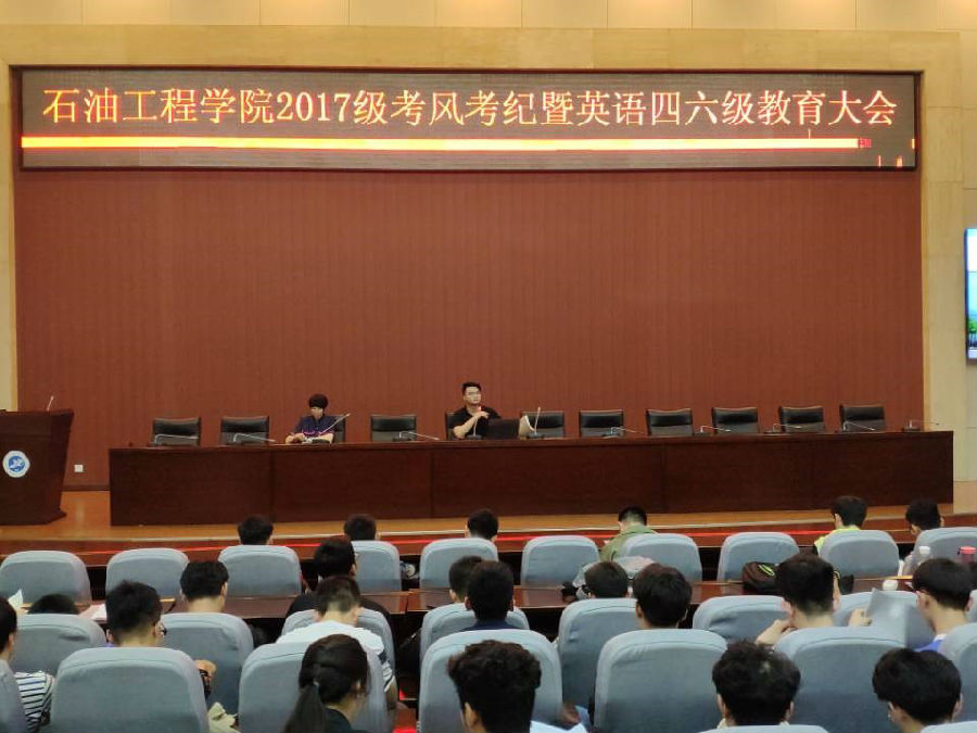 為嚴肅期末考風考紀,進一步提高四六級重視度。6月5日中午13點30分,石油工程學院在我校鄠邑校區弘石報告廳召開“石油工程學院2017級考風考紀暨英語四六級教育大會”。2017級輔導員孫浩哲老師、張楠老師及2017級370余名同學參加本次大會。