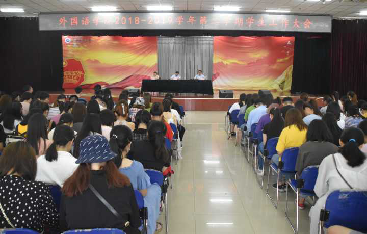 6月12日晚,外國語學院在鄠邑校區騰輝大學生活動中心召開2018/2019學年第二學期學生誠信考試教育和安全教育大會,學院黨委書記蔡強、黨委副書記王業青、2015級2016級輔導員林怡清出席了本次會議,學院2016級、2017級、2018級300余名同學參加會議。