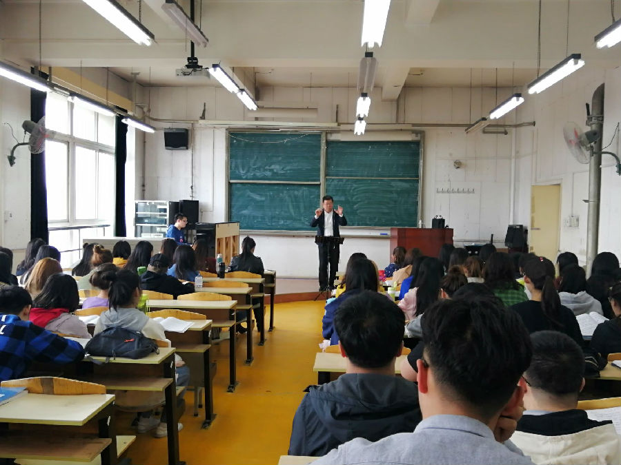 5月8日上午,音樂系理論教研室教師趙建平在二號教學樓1506教室舉辦了公開課——四部混聲合唱《藍色多瑙河》的訓練。公開課上,趙建平老師為學生詳細講解了合唱發聲的要領,通過單聲部訓練與和聲訓練引入合唱作品《藍色多瑙河》的訓練當中。趙老師從作品的藝術審美、音樂表現及技術處理等不同角度做了闡述與分析,并指導學生進行合唱訓練。