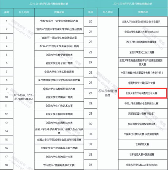 大賽簡介:“全國大學生市場調查與分析大賽”是由教育部高等學校統計學類專業教學指導委員與中國商業統計學會共同主辦,與“中國互聯網+大學生創新創業大賽”、“全國大學生數學建模競賽”、“全國大學生電子設計競賽”、“全國大學生廣告藝術大賽”、“全國大學生電子商務創新、創意及創業挑戰賽”、“外研社杯全國英語演講大賽”等全國性大賽一樣,屬于普通高校學科競賽排行榜的競賽項目。自 2010 年開始,調查與分析大賽共舉辦了九屆,覆蓋統計學、市場營銷、金融學、會計、信息與計算機科學等多個專業。
