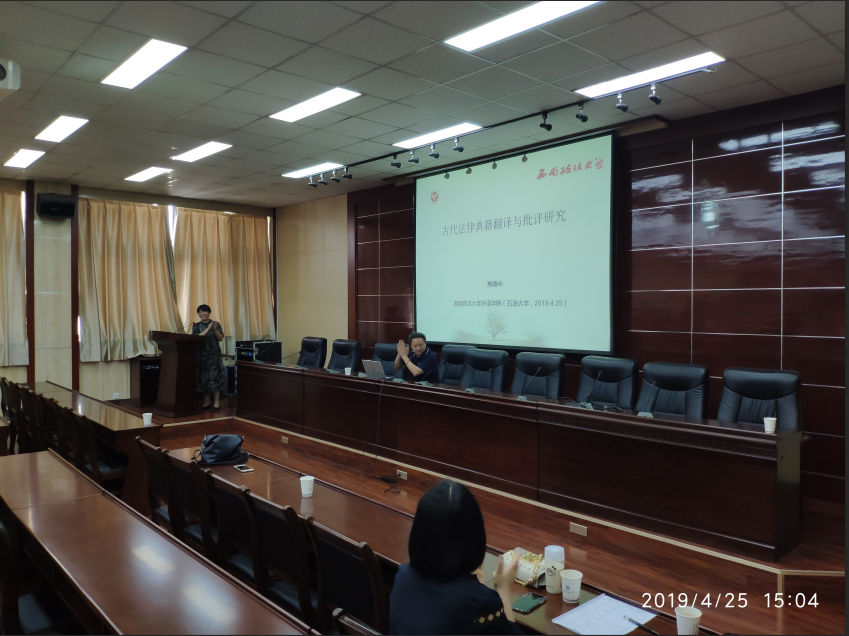 2019年4月25日下午3:00,外國語學院邀請熊德米教授在雁塔校區第五會議室舉行了“我國古代法律典籍翻譯研究與批評”講座。講座由院長于艷英教授主持,并對熊教授近年來的學術情況向與會人員做了介紹。
