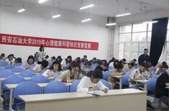 為進一步推進我校心理育人工作深入開展,引導廣大同學積極關注自身和他人的心理健康,學習和傳播心理健康知識,提升學生心理素質,促進學生全面發展,4月23日晚,西安石油大學2019年心理健康科普知識競賽復賽在B115舉行。心理健康科普知識競賽分初賽、復賽和決賽三階段進行。初賽活動由各院(系)安排,組織全體學生學習心理健康知識,并進行考核,選拔出三名優勝選手,組成院(系)代表隊參加學校復賽。