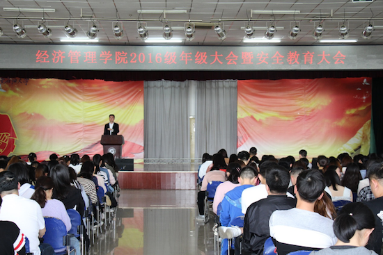 為加強學生的安全意識,進一步做好校規校紀教育,根據學校文件要求和學院工作安排,4月17日下午,經濟管理學院2016級年級大會暨安全教育大會在鄠邑校區騰輝大學生活動中心召開,年級輔導員武威老師、孫劍秋老師與2016級600余名學生參加。