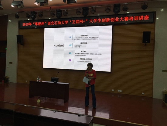 4月10日下午和晚上,我校在鄠邑校區經管人文樓118分別舉辦了兩場2019年“粵嵌杯”西安石油大學“互聯網+”大學生創新創業大賽的培訓講座。本次活動由創新創業中心、粵嵌國家級眾創空間共同主辦,經濟管理學院承辦。來自我校各院系的300余名“互聯網+”師生參與了此次活動。