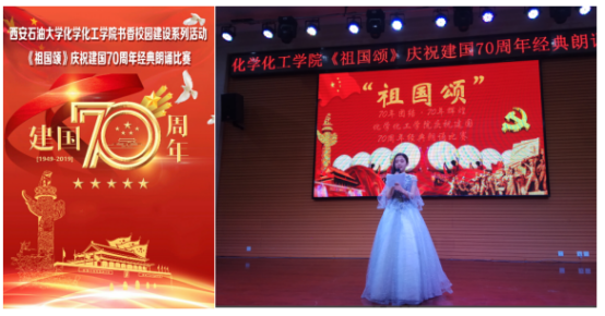 此次朗誦比賽由化學化工學院黨委主辦,學院團委、學生會協辦,是“70年團結·70年輝煌”系列愛國主題活動之一,為學院書香校園文化建設系列活動拉開了序幕。本次朗誦比賽謳歌了祖國成立70周年取得偉大成就,進一步增強了大學生民族團結意識和愛國精神,激發了學生的民族自豪感和責任感,使學生在進一步緬懷先輩的艱苦奮斗中,更加珍惜現在來之不易的生活,為今后學院進一步加強愛國主義教育、社會主義核心價值觀、書香校園建設工作,激發學生刻苦學習、投身建設愛國情懷,緊密圍繞學校中心工作、助力學校事業發展奠定良好基礎。