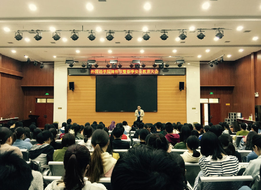 4月2日中午,外國語學院在鄠邑校區經管人文樓118、A416教室召開了清明節暨春季安全教育年級大會,蔣曙光和林怡清老師分別主持了會議,學院全體學生參加了大會。