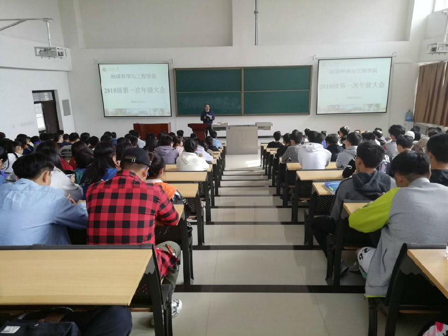 4月1日下午16:00,地球科學與工程學院在鄠邑校區石工地科樓115教室召開2018級年級大會。大會由輔導員李化杰老師主持并主導,學院2018級全學生參加了大會。