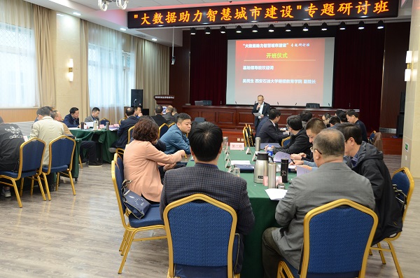 3月18日至28日,我校培訓中心成功舉辦了 2019年春季陜西省干部教育培訓“大數據助力智慧城市建設”專題研討班。開班儀式上,繼續教育學院吳民生副院長對參加本次培訓的來自省直機關單位、省屬企業、高校及地市政府相關部門的39位處級領導干部學員表示熱烈歡迎,并簡要介紹了西安石油大學基地的發展歷程和我基地培訓工作開展情況及取得的成績。