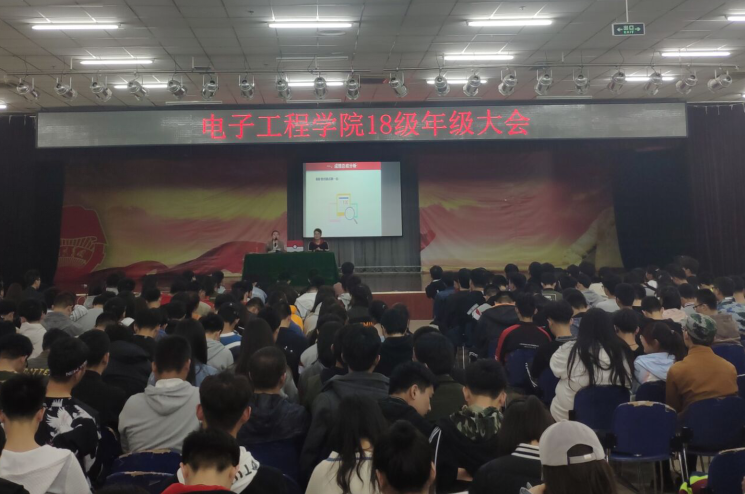 3月27日晚19點30分,電子工程學院2018級年級大會在鄠邑校區騰輝大學生活動中心舉行,會議由電子工程學院2018級輔導員錢宇航主持,全體2018級470余名學生參加了本次大會。