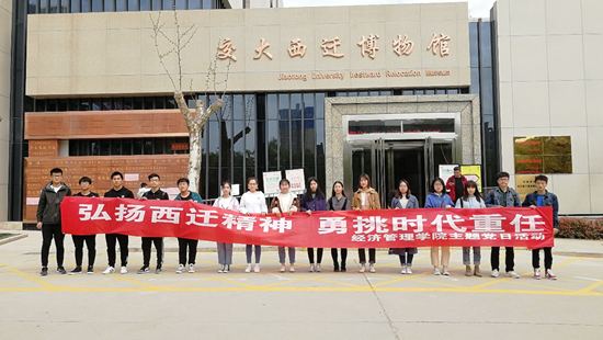為認真貫徹落實習近平總書記對弘揚愛國奮斗精神作出的一系列重要指示和學校相關文件精神,按照學院具體工作部署,3月29日下午,經濟管理學院“弘揚西遷精神,勇挑時代重任”主題黨日活動于西安交通大學西遷博物館開展。輔導員陸曉寒老師、學生黨員代表、學生黨建干部近20人參加。