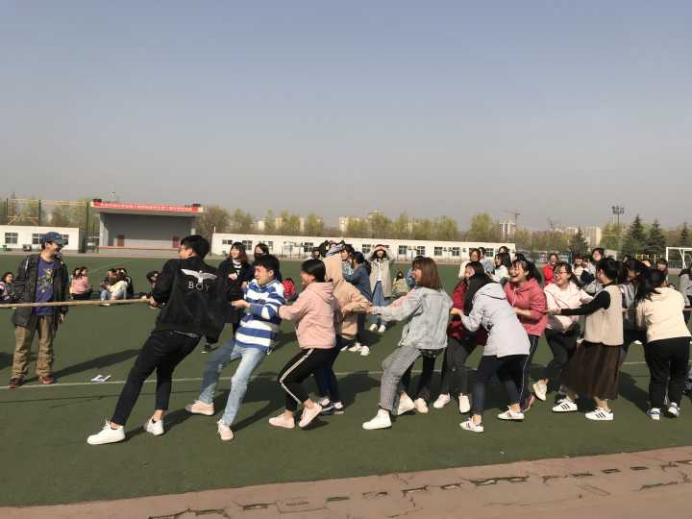2019年3月24日,外國語學院2018級全體學生在鄠邑校區西體育場舉行了拔河比賽暨年級大會。學院黨委副書記王業青參加了活動。