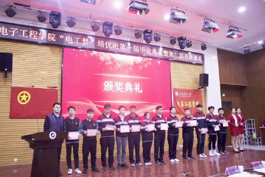 3月20日晚,電子工程學院“電工夢”培優班第一屆畢業典禮暨第二屆開班典禮在鄠邑校區人文經管樓118舉行。電子工程學院黨委副書記畢軼慧、學生輔導員梁琦、黃景鵬、第一屆培優班優秀學員代表以及本屆學員共計111人參加。