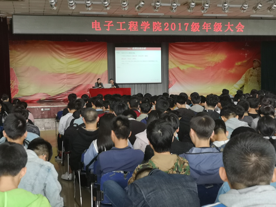 3月20日下午,電子工程學院2017級年級大會在鄠邑校區騰輝大學生活動中心舉行,會議由電子工程學院2017級輔導員黃景鵬、胡思文主持,全體2017級490余名學生參加。
