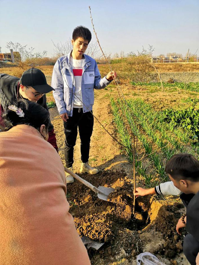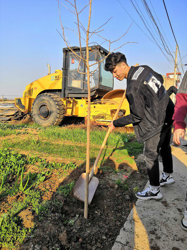 活動中,大家積極勞動,相互協作。各位黨員同志表現出了極高的活動熱情,向當地村民請教農作物常識及植樹相關知識。村民們知無不答、答無不詳,頗為熱心地指導大家種樹間距、挖坑技巧,幫助同學們埋土澆水。“垂陰當覆地,聳干會參天。好作思人樹,漸作惠化傳。”同學們化身“綠色使者”,為剛剛蘇醒的鄉村送去了生機,為剛剛解凍的自然帶來了溫暖。在張陽老師的帶領下,大家相互幫助,團結協作,有條不紊地進行工作。在此春暖花開的季節,種下一棵棵樹苗,留下一片片綠色,收獲一個個希望。同學們的認真負責、朝氣蓬勃得到了村民們的一致認可和充分肯定。