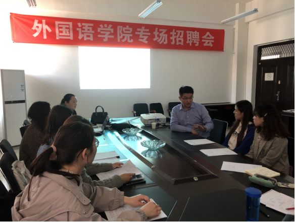 隨后,外國語學院黨委書記蔡強、黨委副書記王業青與企業招聘代表進行交流,詳細了解企業的發展狀況及企業對學校畢業生的滿意度,表達了進一步加強校企合作的意愿,希望用人單位和人才機構可以合作共建學生實習基地,為外國語學院學生提供社會實踐平臺,讓學生提前接觸社會,增加相關工作經驗。