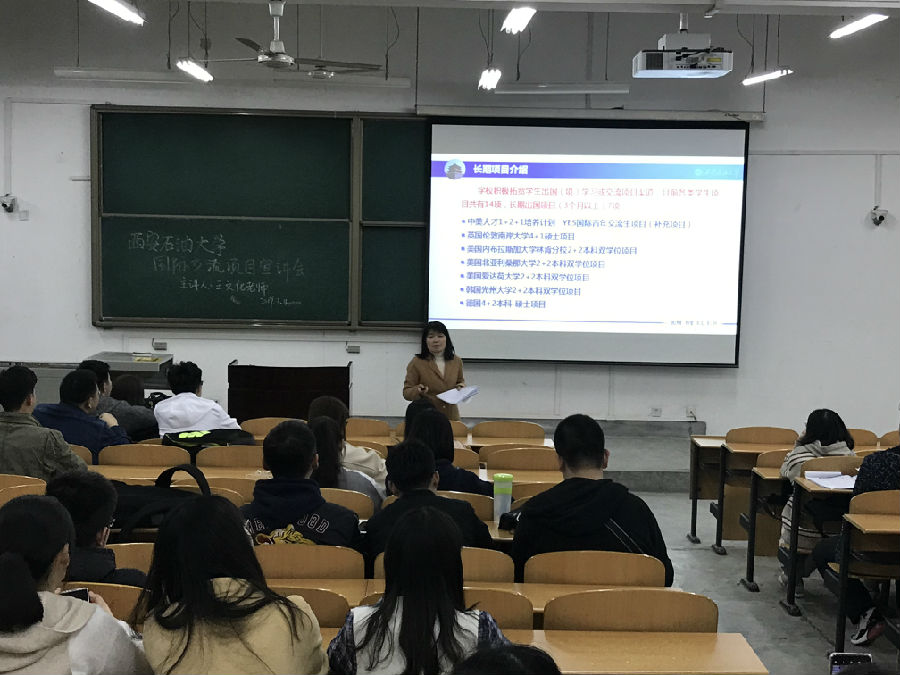 3月11日晚19:00,國際交流與合作處在鄠邑校區B114教室舉辦留學項目宣講會,王文化副處長主講。