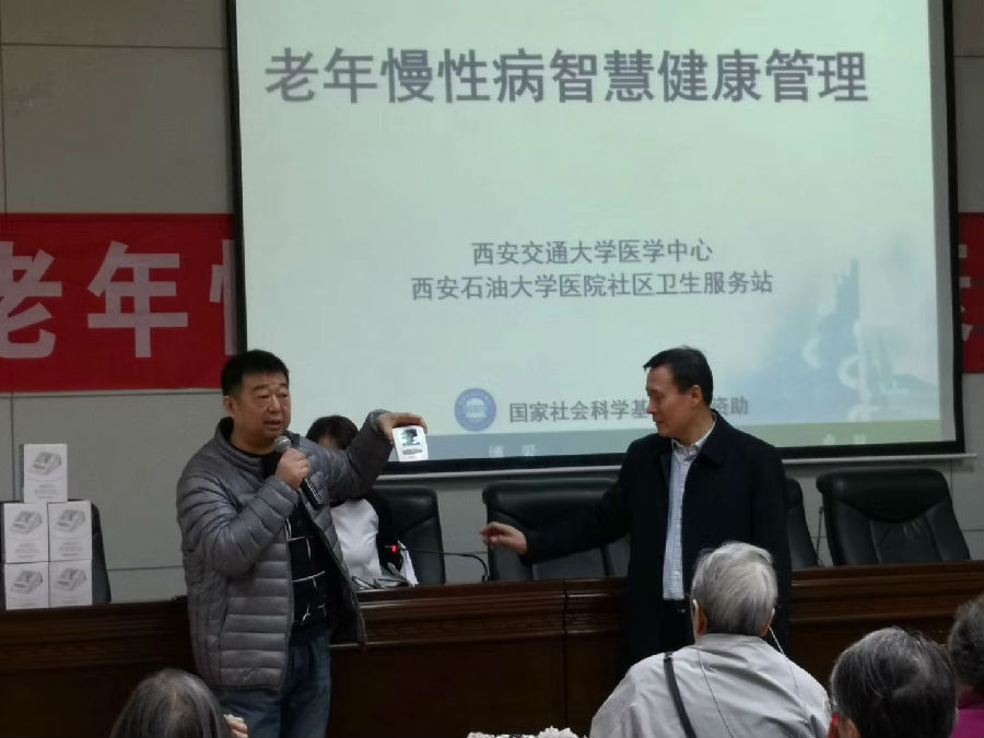 講座結束后,西安交通大學醫學中心的工作人員現場對高血壓智慧健康管理項目進行了詳細介紹,通過在醫院社區衛生服務站建立電子檔案并檢測血壓波動,享受交大一附院專家遠程診療及轉診,方便離退休職工對高血壓的監測,提高自我管理能力和生活質量,這也是校醫院社區居民慢病管理的新的舉措。