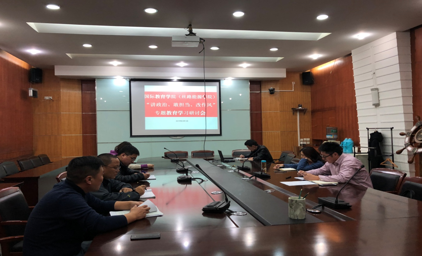 3月1日下午,國際教育學院(絲路能源學院)“講政治、敢擔當、改作風”專題學習研討會在雁塔校區學術會議中心第四會議室召開。會議由副院長顏庭星主持,學院領導班子、處科級干部以及全體黨員同志參加了會議。