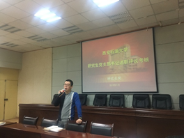 研究生院黨支部書記述職采取現場述職和書面述職相結合的方式進行。石工類2018級第二黨支部書記劉學斌,電工類2018級第三黨支部書記王博通,外國語類2018級黨支部書記韓香,電工類2017級第一黨支部書記童美帥,石工類2017級第二黨支部書記姜關鋒,思政類2017級黨支部書記駱語辰,石工類2016級第三黨支部書記張定周及機械類2016級第一黨支部書記賀云婷8位書記進行現場述職。述職過程中,各支部書記按照學校要求,從嚴守政治紀律和政治規矩,增強“四個意識”、堅定“四個自信”,堅決做到“兩個維護”;支部開展的學習教育情況、“三會一課”及黨日活動落實情況、黨費收繳管理情況、黨員發展情況和黨員先鋒模范作用發揮情況;支部建設中存在的問題等方面對2018年度支部工作進行總結,提出改進措施。