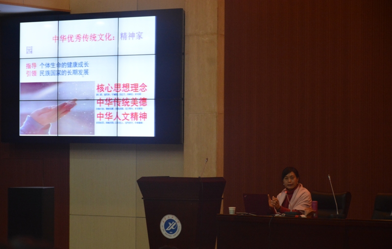 講座中,曾教授先以“圣誕節”為例,對中西方文化進行了對比,向大家介紹了“中華優秀傳統文化”的基本內容。接著曾教授以《黃帝內經》為基礎,向同學們講解了“性命之道”。她指出,人文修養的意義之一就在于珍重生命,曾教授希望同學們遵循自然之道,養成良好的作息習慣,為今后的學習和工作打下健康的身體基礎,并親自為同學們示范了如何通過按摩大椎穴保持頸椎健康。最后,曾教授建議同學們要多研讀道家、儒家和佛學經典,這些書籍對我們有極高的借鑒價值和參考意義。她希望同學們通過閱讀中華優秀傳統文化經典書籍,豐富精神世界、提升人文修養。本次講座使同學們對中華傳統文化有了更深入的了解,對提升同學們的人文修養,豐富校園文化起到了積極作用。