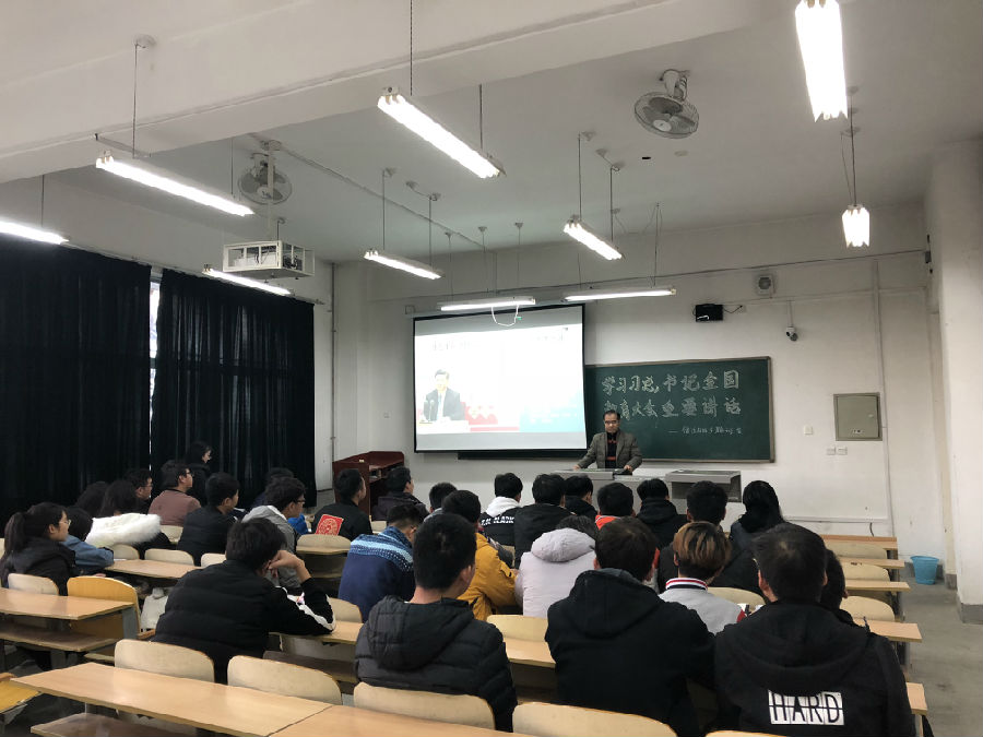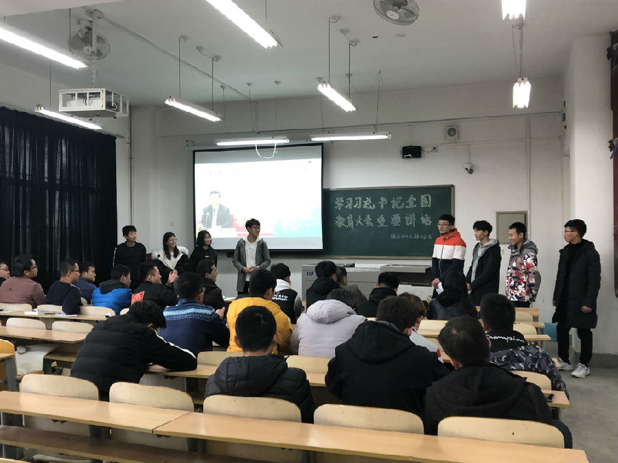 首先,主持人康怡介紹了本次班會的主題和召開目的,并匯報了班級成員出勤情況。班會開始,關耀和李葉賽同學通過視頻和PPT,對習近平總書記在全國教育大會的重要講話做出了詳細的講解,并重點闡述了習近平總書記全國教育大會重要講話金句,使同學們深刻意識到國家對教育的高度重視和頂層構建。學習過程中,同學們踴躍發言,既探討了對教育大會精神的認識,又兼談了大學階段學習的重要性。