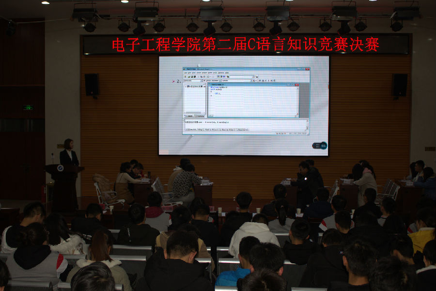 為豐富同學們的大學生活,12月16日晚七點,電子工程學院在經管人文樓118室,舉辦了電子工程學院第二屆C語言知識競賽。普特信息公司郭瑞老師,學院2018級輔導員錢宇航老師及學院一百五十余名同學參加了本次活動。