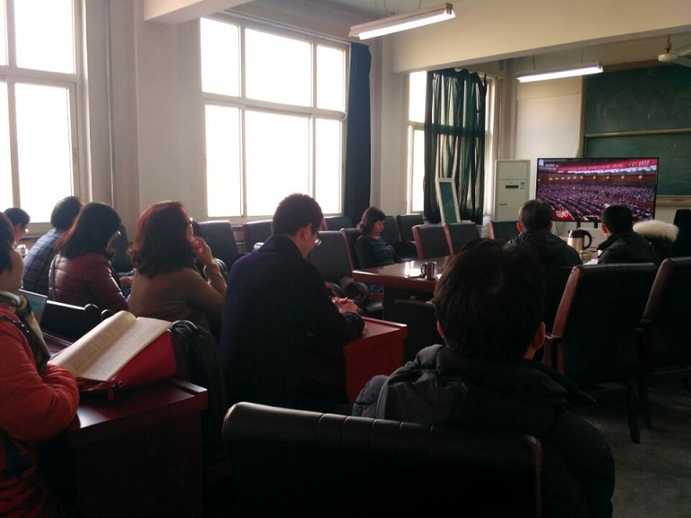 12月18日上午10時整,經我院黨總支書記李淵和各黨支部充分動員,包括張海濤副院長在內的馬院黨員職工齊聚雁塔校區教學一號樓馬院黨員活動室,同步收看慶祝改革開放四十周年大會實況。
