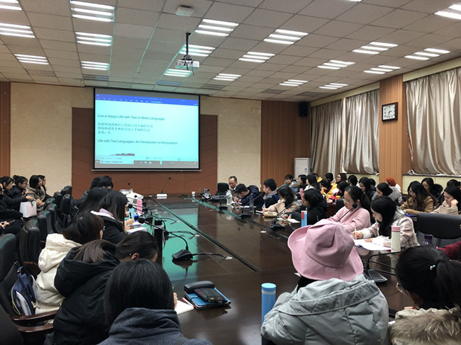 12月12日下午,人文學院在雁塔校區西階第二會議室舉辦了以“Live a Happy Life with Two or More Languages”為主題的人文學術沙龍。本次活動由黃慶豐副院長主持,主講人為人文學院閻平教授,部分教師及2018級漢語國際教育專業學生參加本次交流活動。