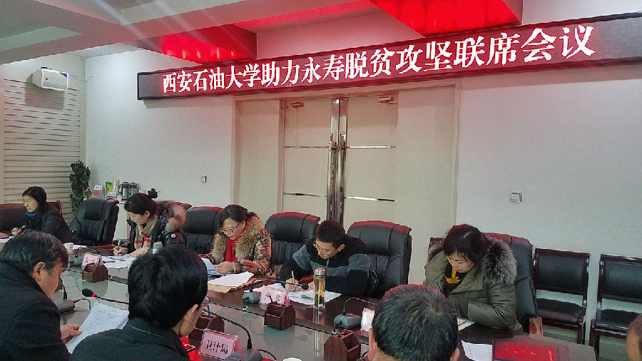 12月5日,西安石油大學助力永壽脫貧攻堅聯席會議在永壽縣政府召開,西安石油大學工會主席袁玎、副主席朱瑋,永壽縣常委、副縣長樊莉霞出席會議,永壽縣高校幫扶聯席會議成員單位主要負責同志參加了會議。